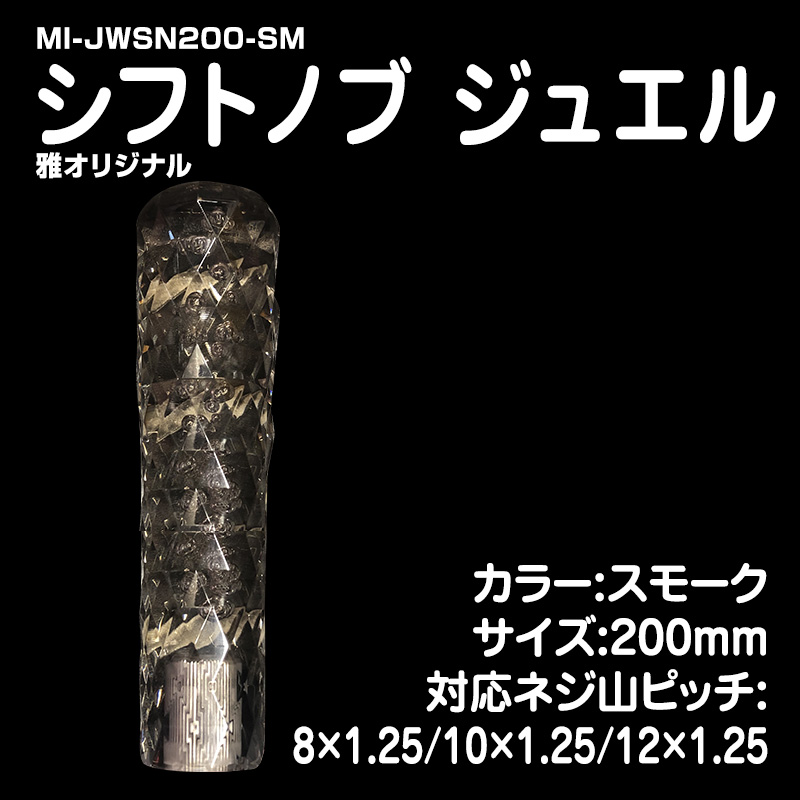 雅オリジナルシフトノブ ジュエル スモーク 200mm (8×1.25/10×1.25/12×1.25) MI-JWSN200-SM