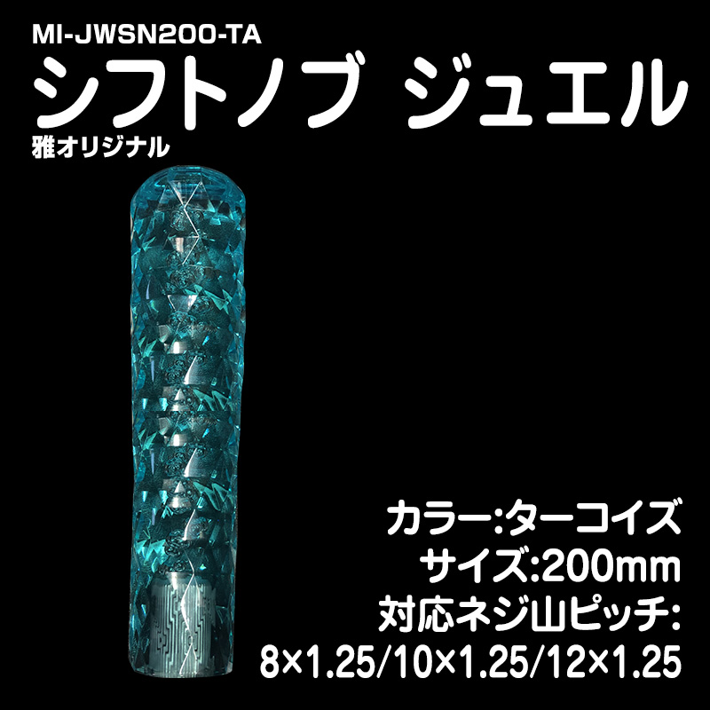 雅オリジナルシフトノブ ジュエル ターコイズ 200mm (8×1.25/10×1.25/12×1.25) MI-JWSN150-TA