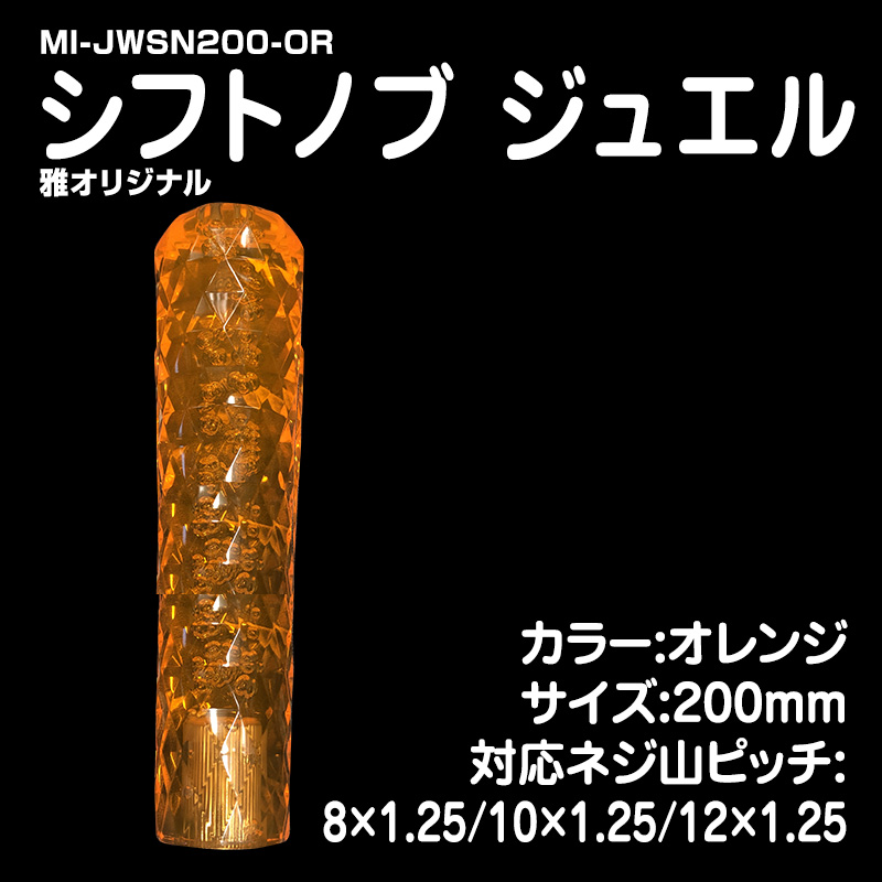雅オリジナルシフトノブ ジュエル オレンジ 200mm (8×1.25/10×1.25/12×1.25) MI-JWSN200-OR