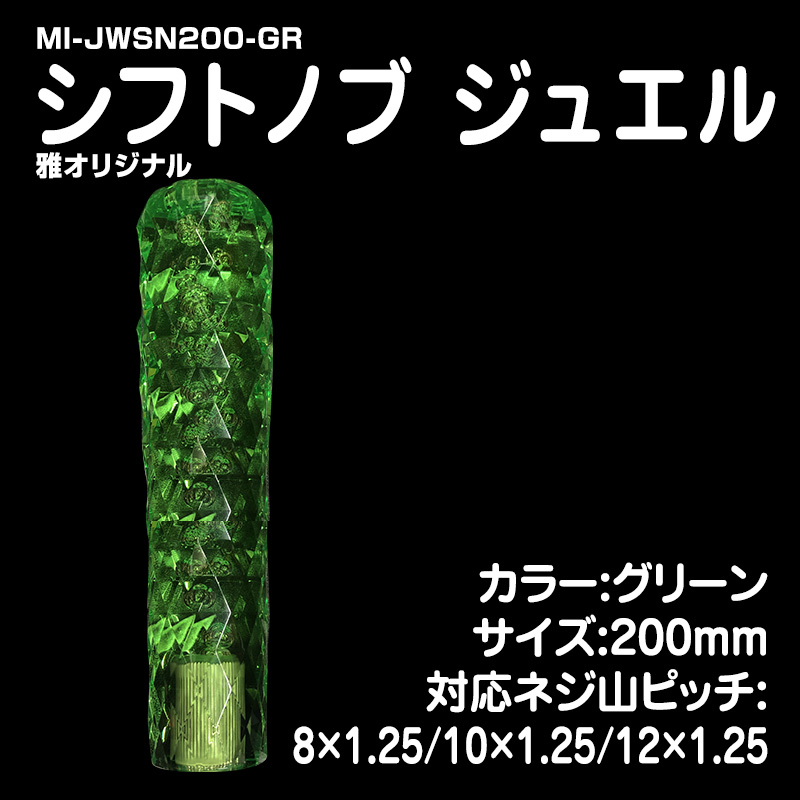 雅オリジナルシフトノブ ジュエル グリーン 200mm (8×1.25/10×1.25/12×1.25) MI-JWSN200-GR