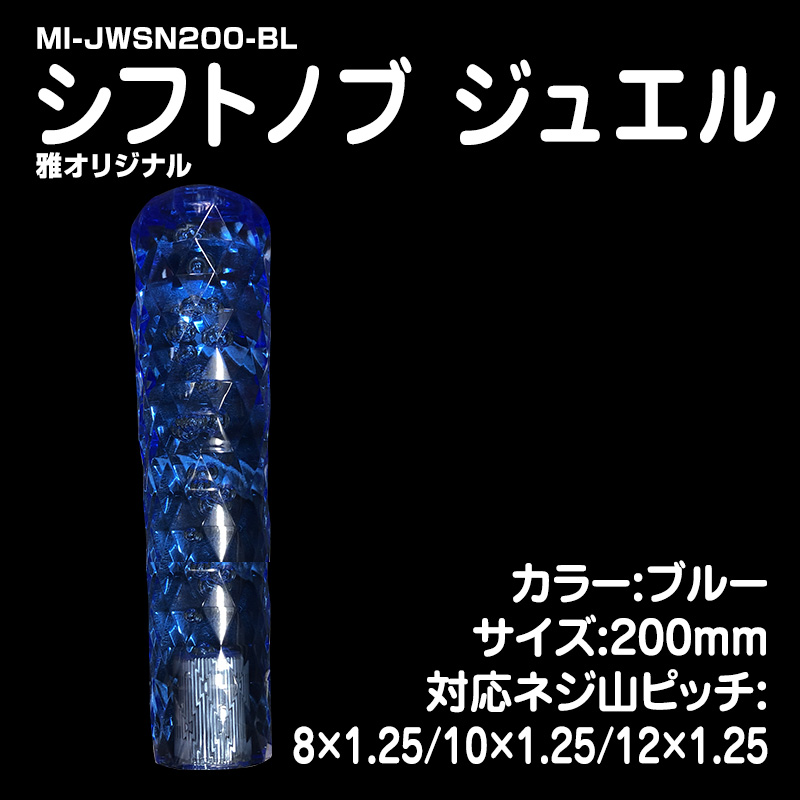 雅オリジナルシフトノブ ジュエル ブルー 200mm (8×1.25/10×1.25/12×1.25) MI-JWSN200-BL