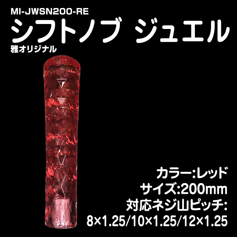 雅オリジナルシフトノブ ジュエル レッド 200mm (10×1.25/12×1.25/12×1.75) MI-JWSN200-RE