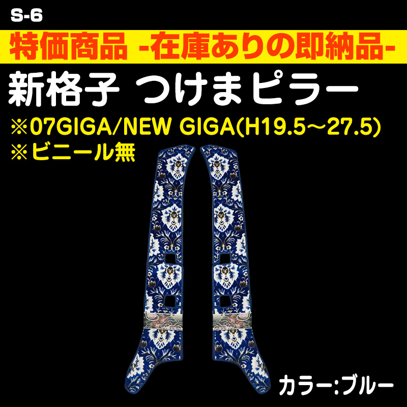 S6 <特価・即納品> 新格子/ブルー(ビニール無) つけまピラー 07GIGA/NEW GIGA(H19.5〜27.5) <¥8,980→¥4,490>