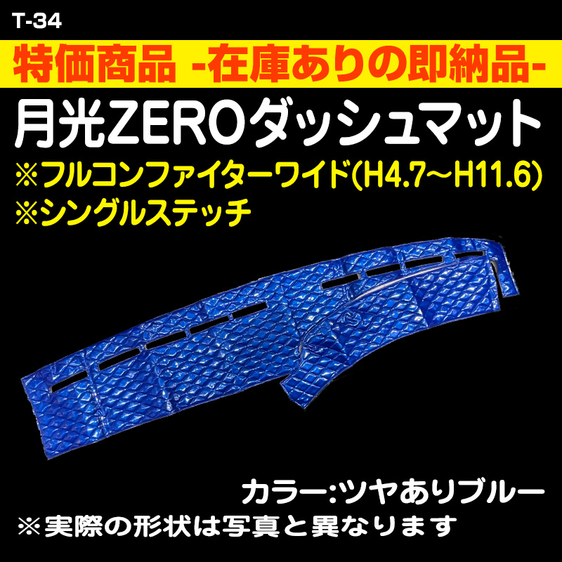T34 <特価品> 月光ZEROダッシュマット(シングルステッチ)ツヤありブルー -フルコンファイターワイド(H4.7〜H11.6)-