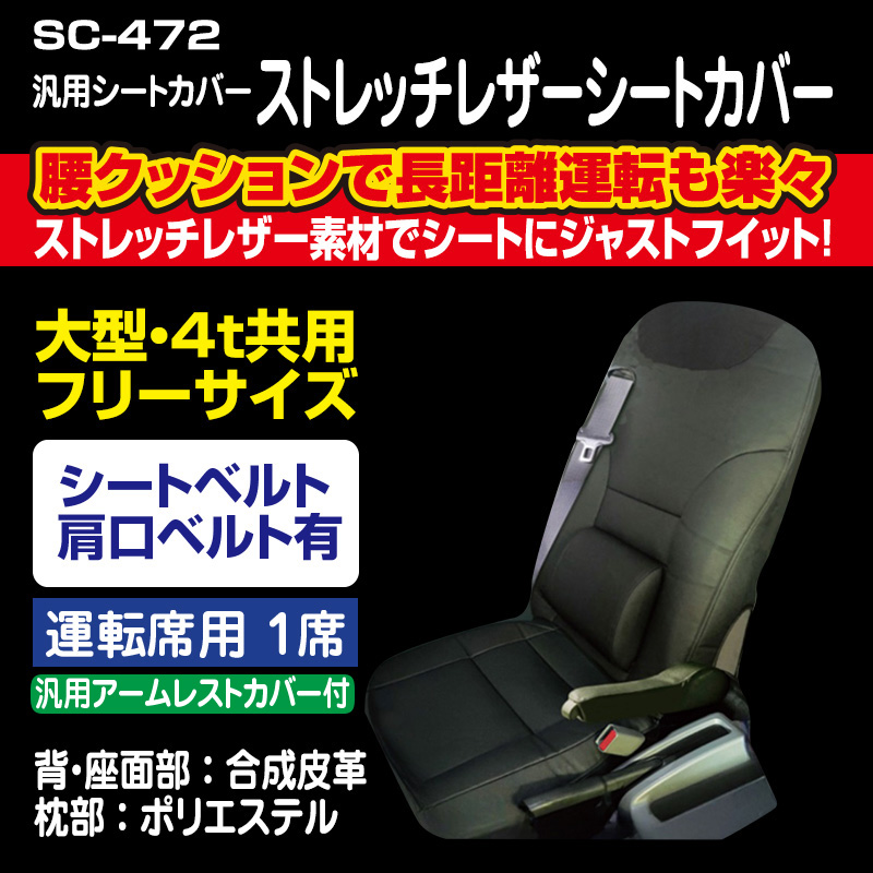 ストレッチレザーシートカバー(汎用シートカバー) 汎用アームレスト付 大型/4t共用フリーサイズ※シート肩口ベルト有※