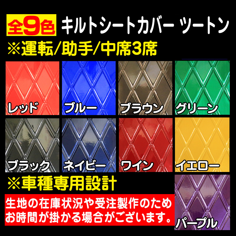 【好評につき3月末まで延長】真月光キルトシートカバー ツートン運転/助手/中席3席※ダブルステッチ※(受注制作品/代引き不可)