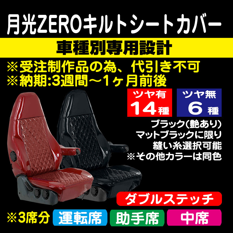 月光ZEROキルトシートカバー 運転/助手/中席3席※ダブルステッチ※(受注制作品/代引き不可)