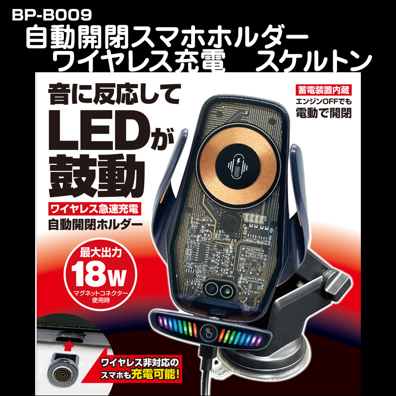 自動開閉スマホホルダー ワイヤレス充電 スケルトン【BP-B009】