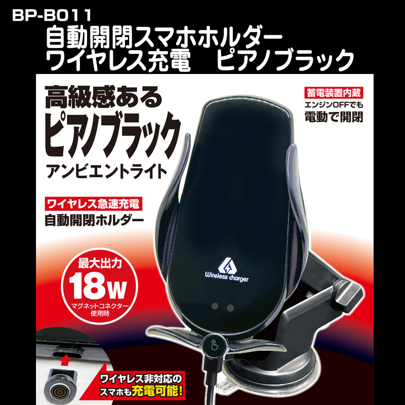 ※近日入荷予定※ 自動開閉スマホホルダー ワイヤレス充電 ピアノブラック【BP-B011】