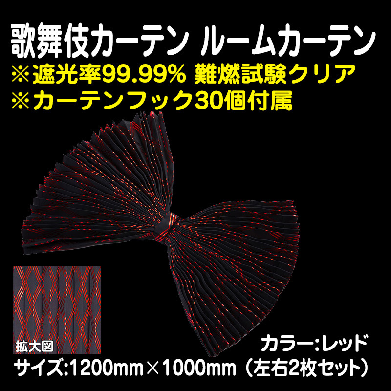 歌舞伎カーテン ルームカーテン レッド (1200×1000mm) 左右2枚セット
