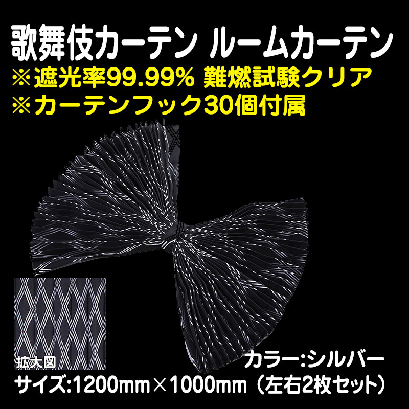 歌舞伎カーテン ハイルーフカーテン シルバー (1200×1400mm) 左右2枚セット