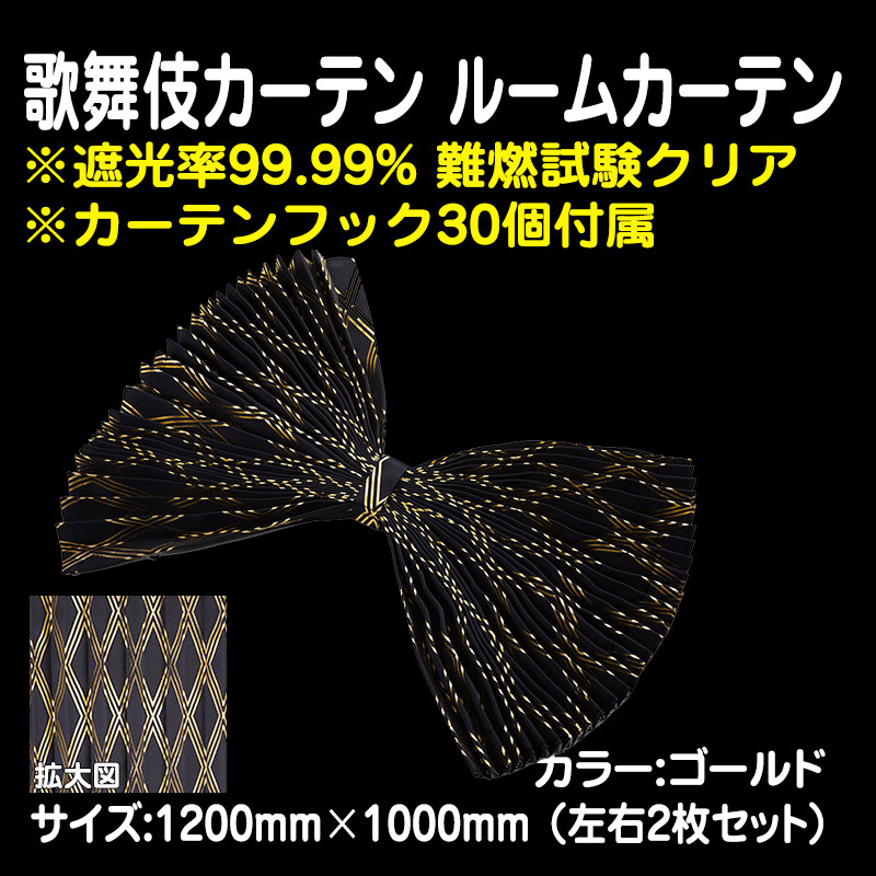 歌舞伎カーテン ハイルーフカーテン ゴールド (1200×1400mm) 左右2枚セット