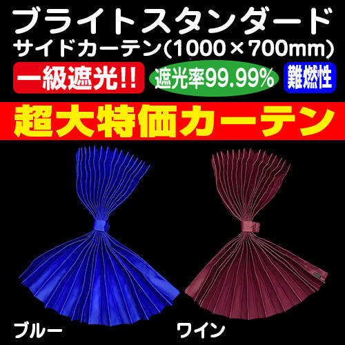 <特価カーテン>ブライトスタンダード サイドカーテン(1000×700mm) ブルー・ワインのみ (6,930円→1,980円にプライスダウン)ツヤ有 難燃性 一級遮光 【2枚1台分】