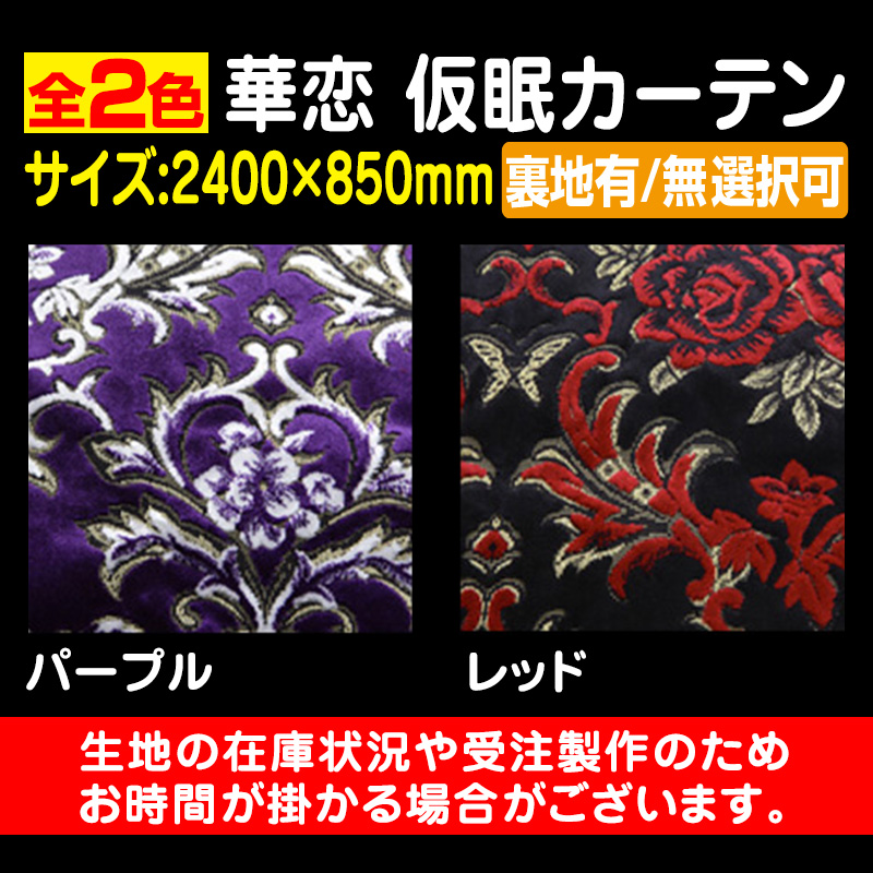 大花束 仮眠カーテン 2.5m幅×80cm丈【片面/四角ストレート】【2枚1台分】(受注製作品/代引き不可)