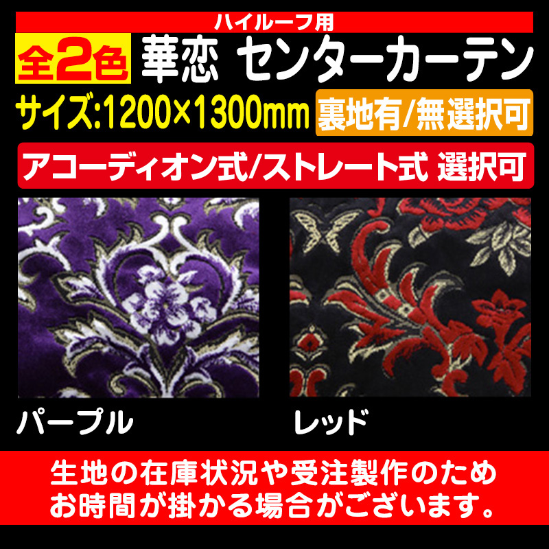 ベルサイユ センターカーテン(ハイルーフ/1300mm)[全4色] 裏地有/無 選択可能 (受注製作品/代引き不可)【2枚1台分】