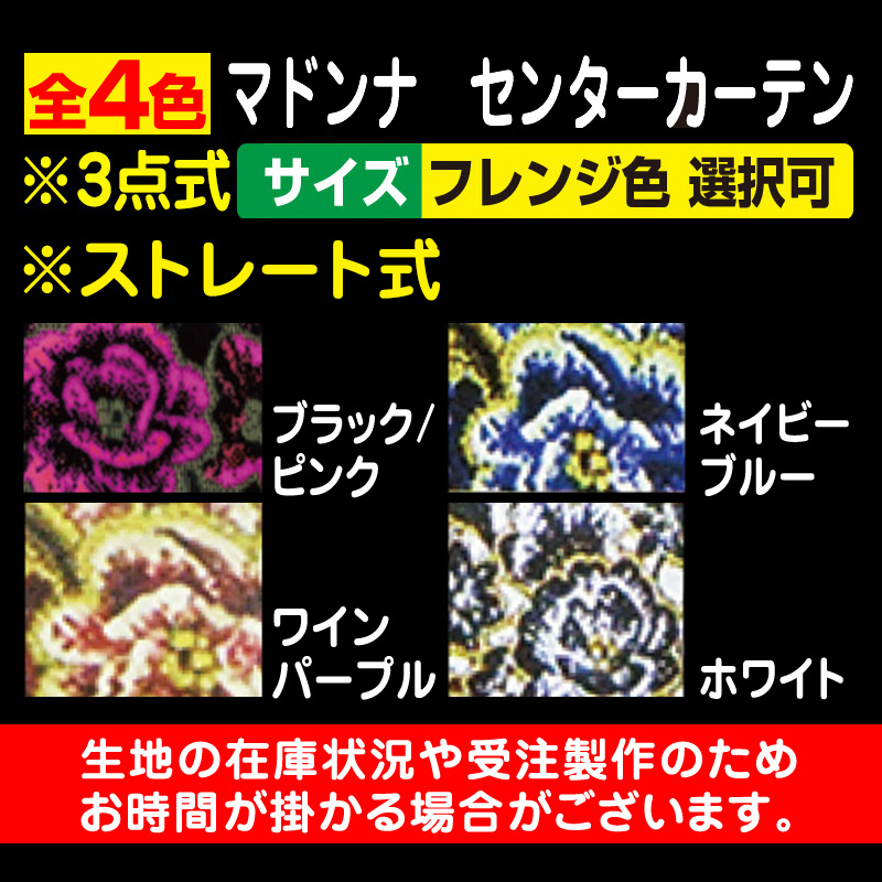 マドンナ 3点式センターカーテン[全4色] サイズ/フレンジ色 選択可能 (受注製作品/代引き不可)【2枚1台分】