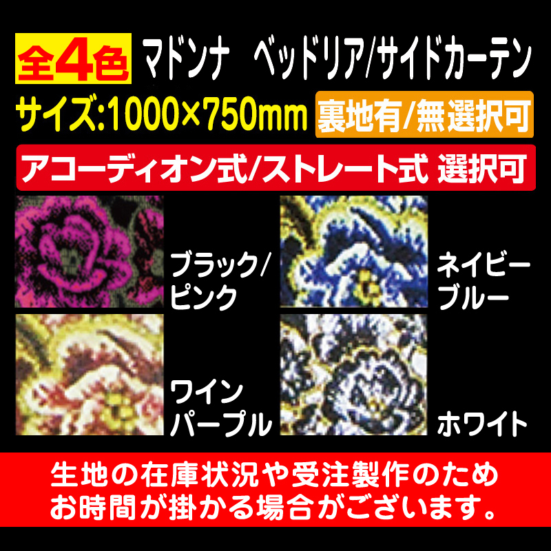 マドンナ ベッドリア/サイドカーテン[全4色] 裏地有/無 選択可能 (受注製作品/代引き不可)【2枚1台分】