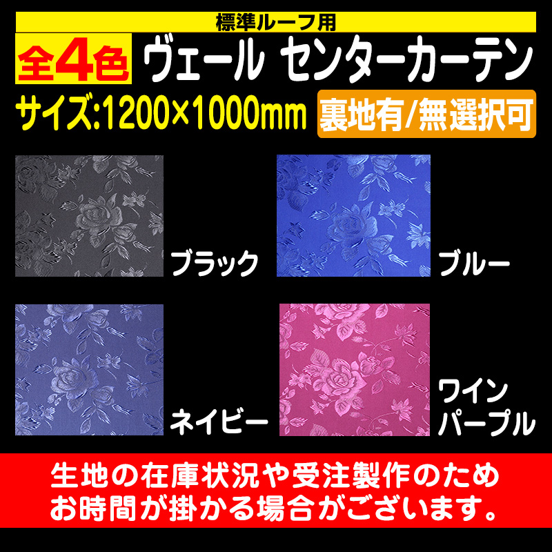 ベルサイユ センターカーテン(標準ルーフ/1000mm)[全3色] 裏地有/無 選択可能 (受注製作品/代引き不可)【2枚1台分】