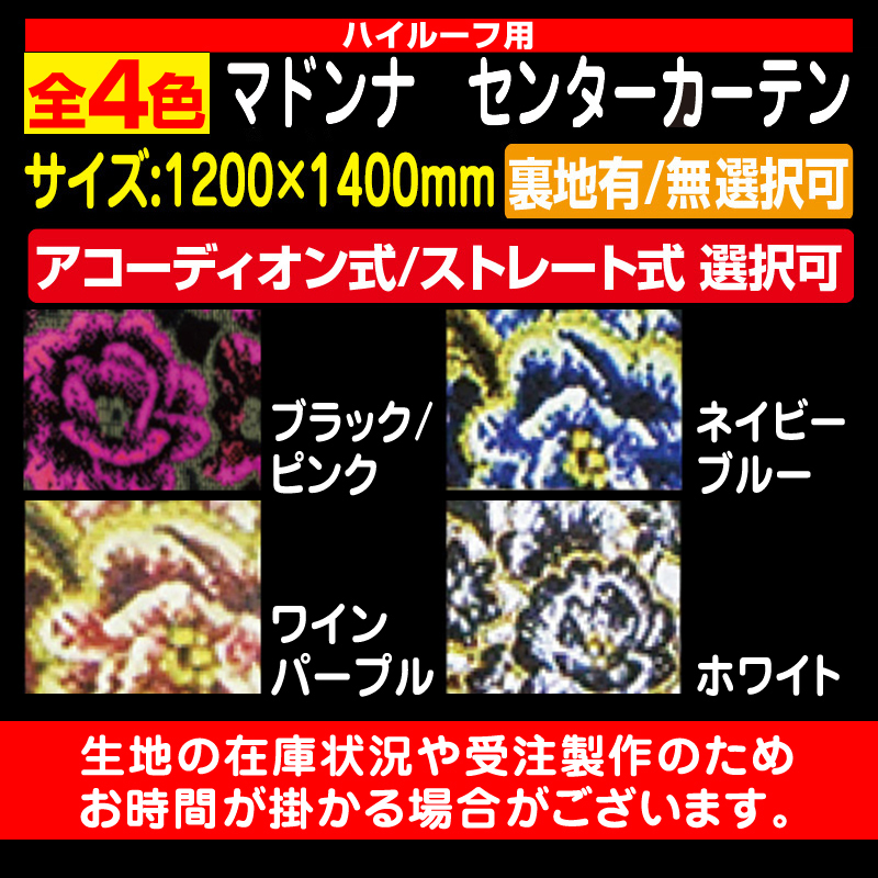 マドンナ センターカーテン(ハイルーフ/1400mm)[全4色] 裏地有/無 選択可能 (受注製作品/代引き不可)【2枚1台分】