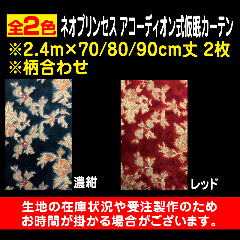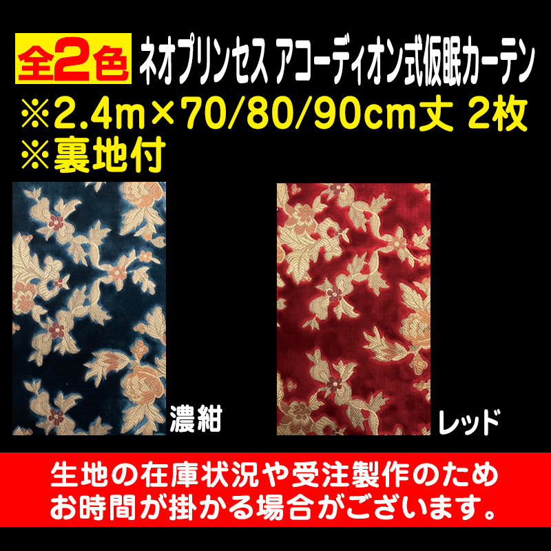 ネオプリンセス アコーディオン式仮眠カーテン【両面】【2枚1台分】 2.4m×70/80/90cm丈 2枚(受注製作品/代引き不可)