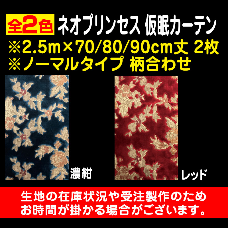 ネオプリンセス 仮眠カーテン 2.5m幅×70/80/90cm丈×2枚【ノーマルタイプ 柄合わせ】【2枚1台分】 2.4m×70/80/90cm丈 2枚(受注製作品/代引き不可)
