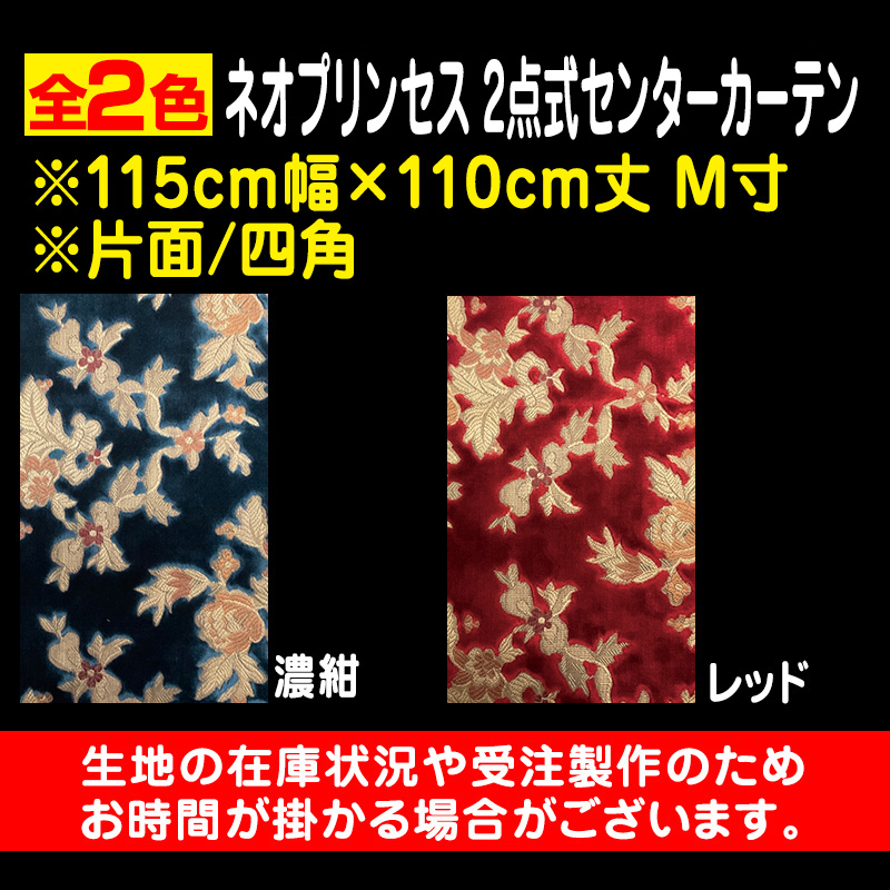 ネオプリンセス 2点式センターカーテン 110cm幅×100cm丈 M寸【片面/四角】【2枚1台分】(受注製作品/代引き不可)