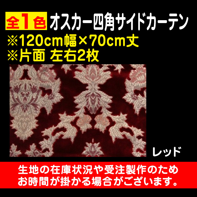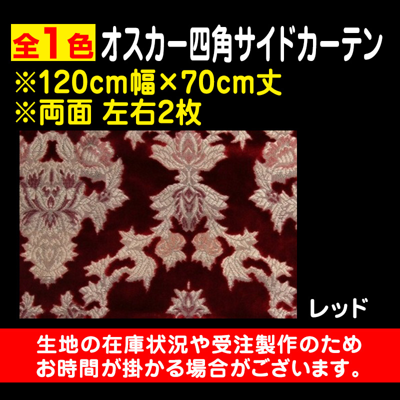 オスカー四角サイドカーテン 120cm幅×70cm丈【両面】左右2枚 (受注製作品/代引き不可)