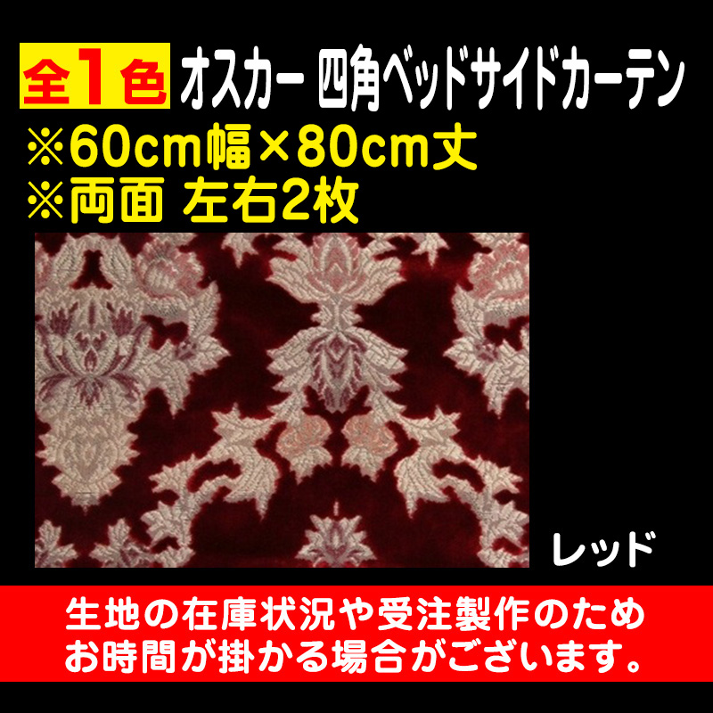 オスカー 四角ベッドサイドカーテン 60cm幅×80cm丈 【両面】左右2枚 (受注製作品/代引き不可)