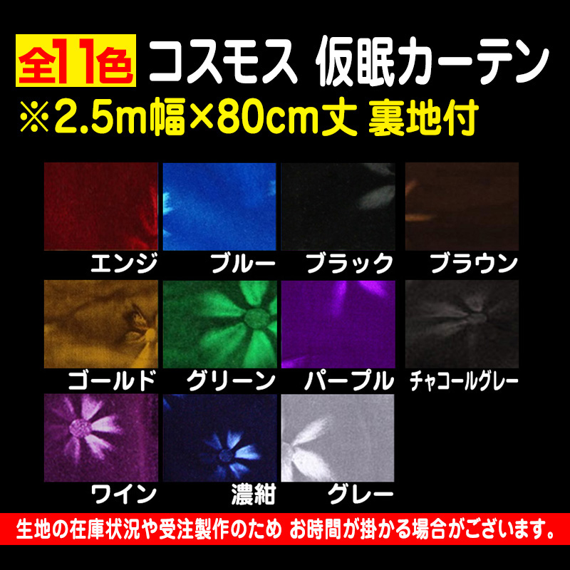 コスモス 仮眠カーテン 2.5m幅×80cm丈【四角ストレート/裏地付】【2枚1台分】(受注製作品/代引き不可)
