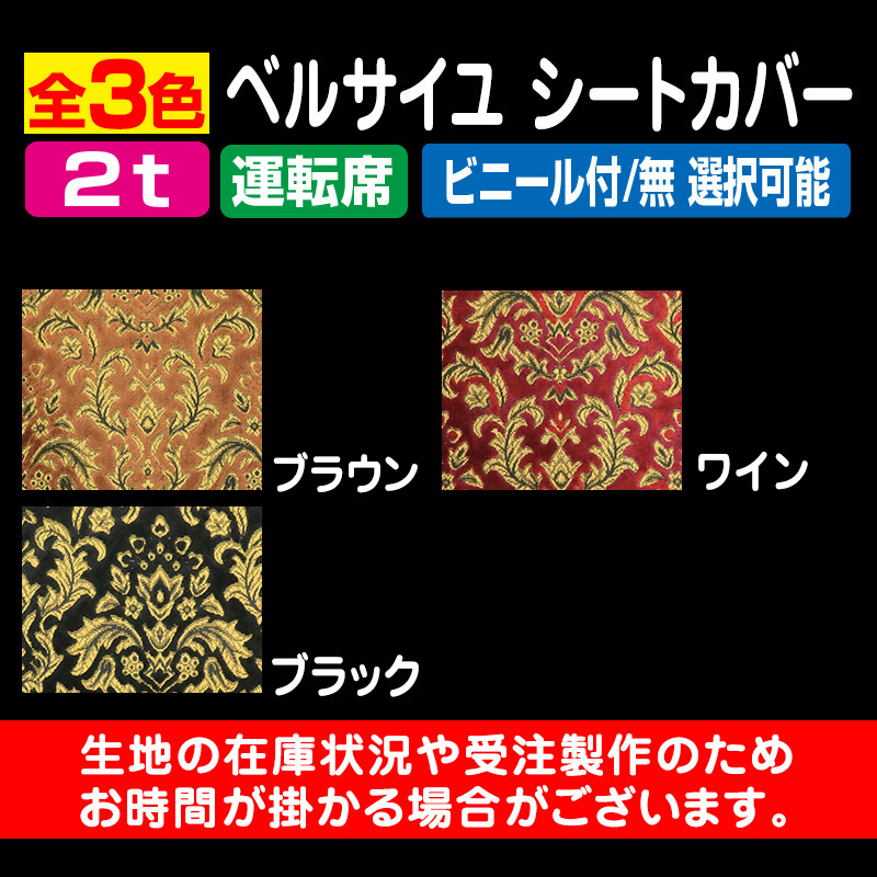 ベルサイユ シートカバー(2t/運転席)[全3色]ビニール付/無 選択可能 (受注製作品/代引き不可)