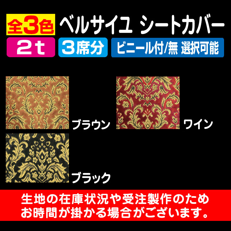 ベルサイユ シートカバー(2t/3席)[全3色]ビニール付/無 選択可能 (受注製作品/代引き不可)
