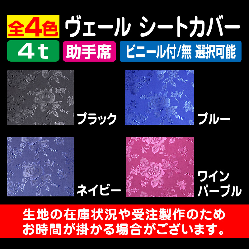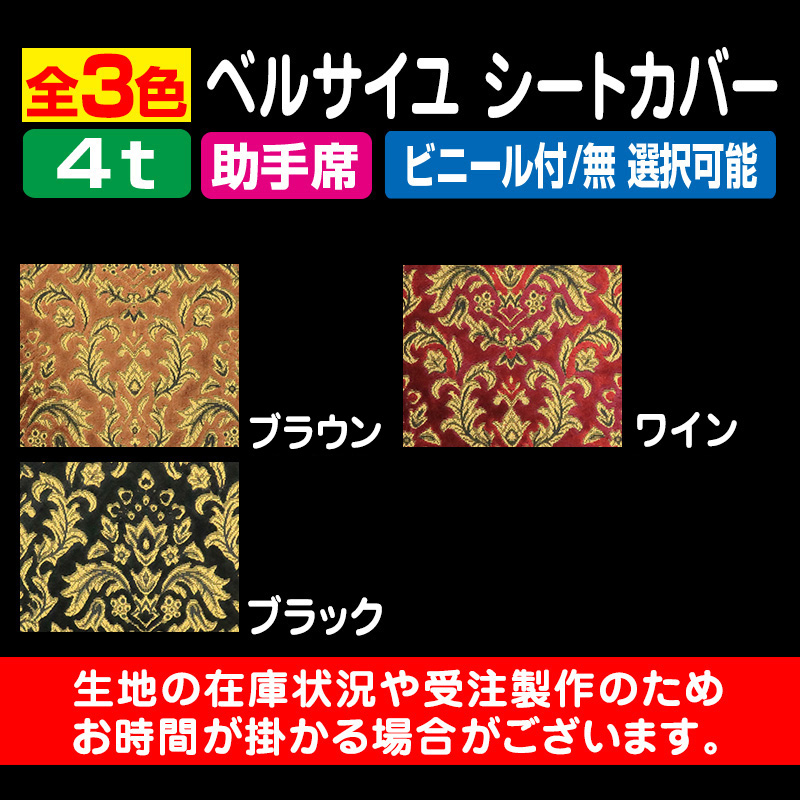 ベルサイユ シートカバー(4t/助手席)[全3色] ビニール付/無 選択可能 (受注製作品/代引き不可)