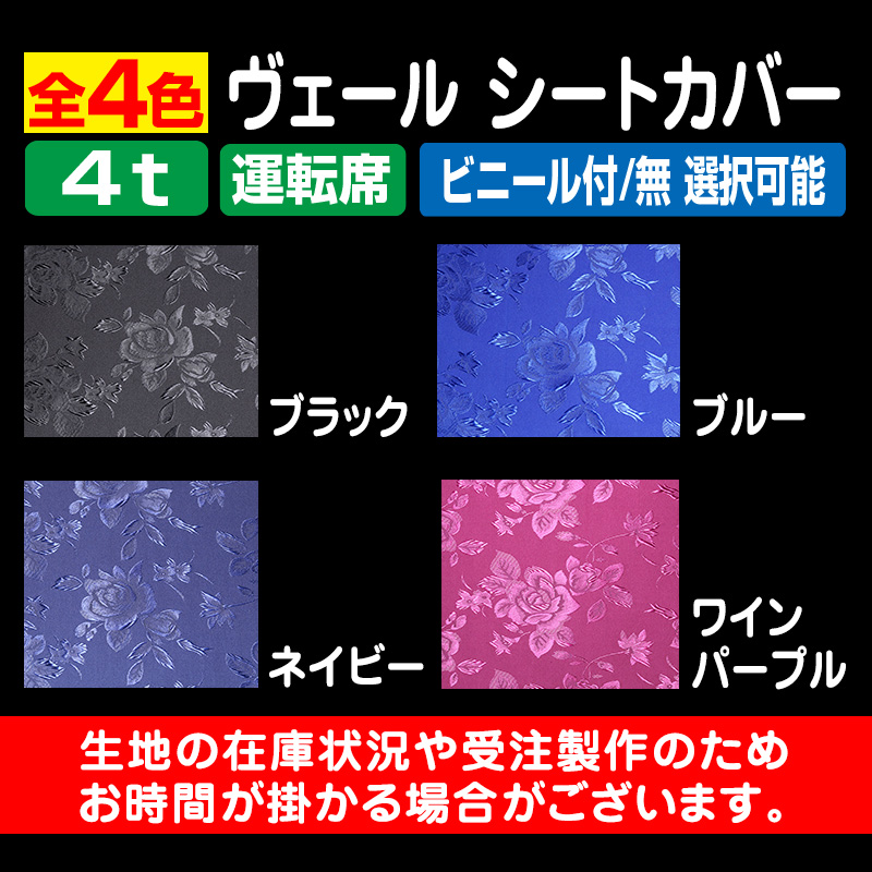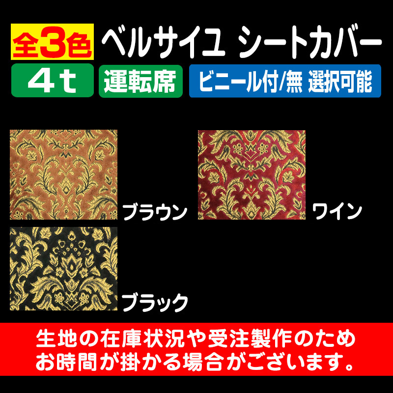 ベルサイユ シートカバー(4t/運転席)[全3色]ビニール付/無 選択可能 (受注製作品/代引き不可)