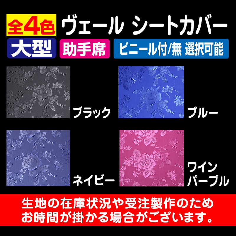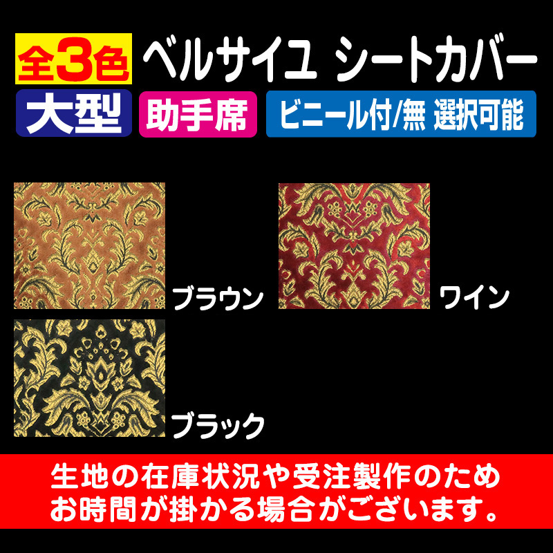 ベルサイユ シートカバー(大型/助手席)[全3色]ビニール付/無 選択可能 (受注製作品/代引き不可)