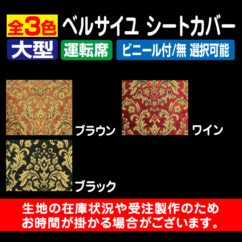 ベルサイユ シートカバー(大型/運転席)[全3色]ビニール付/無 選択可能 (受注製作品/代引き不可)