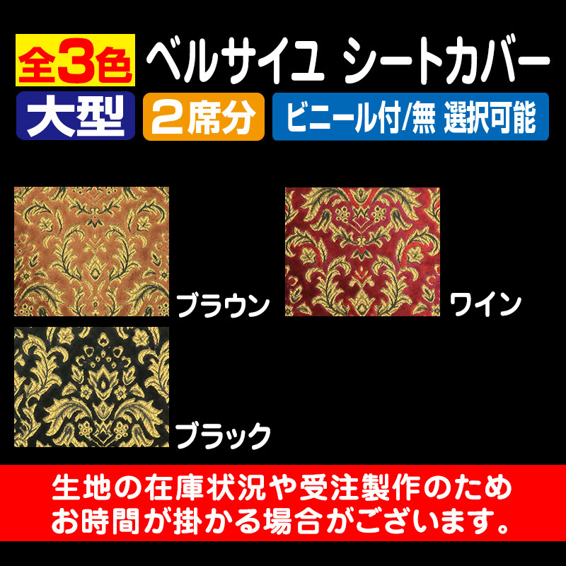 ベルサイユ シートカバー(大型/2席)[全4色]ビニール付/無 選択可能 (受注製作品/代引き不可)