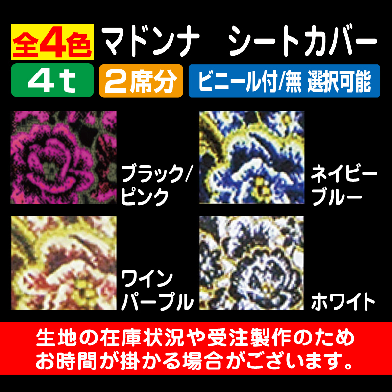 マドンナ シートカバー(4t/2席)[全4色]ビニール付/無 選択可能 (受注製作品/代引き不可)