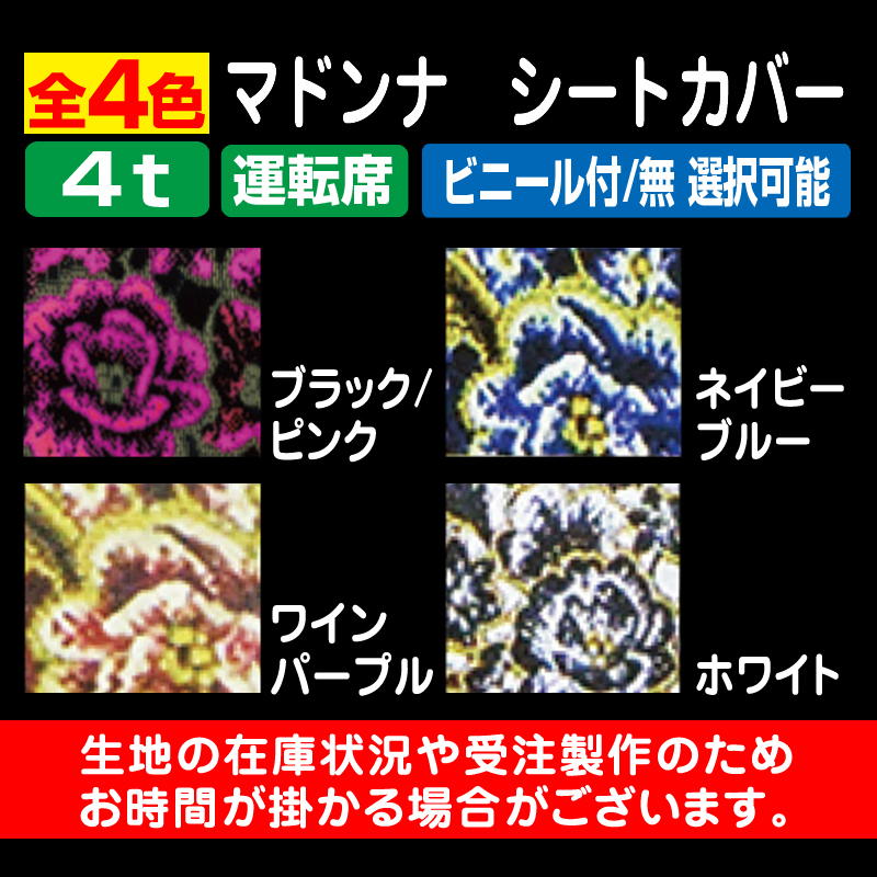 マドンナ シートカバー(4t/運転席)[全4色]ビニール付/無 選択可能 (受注製作品/代引き不可)