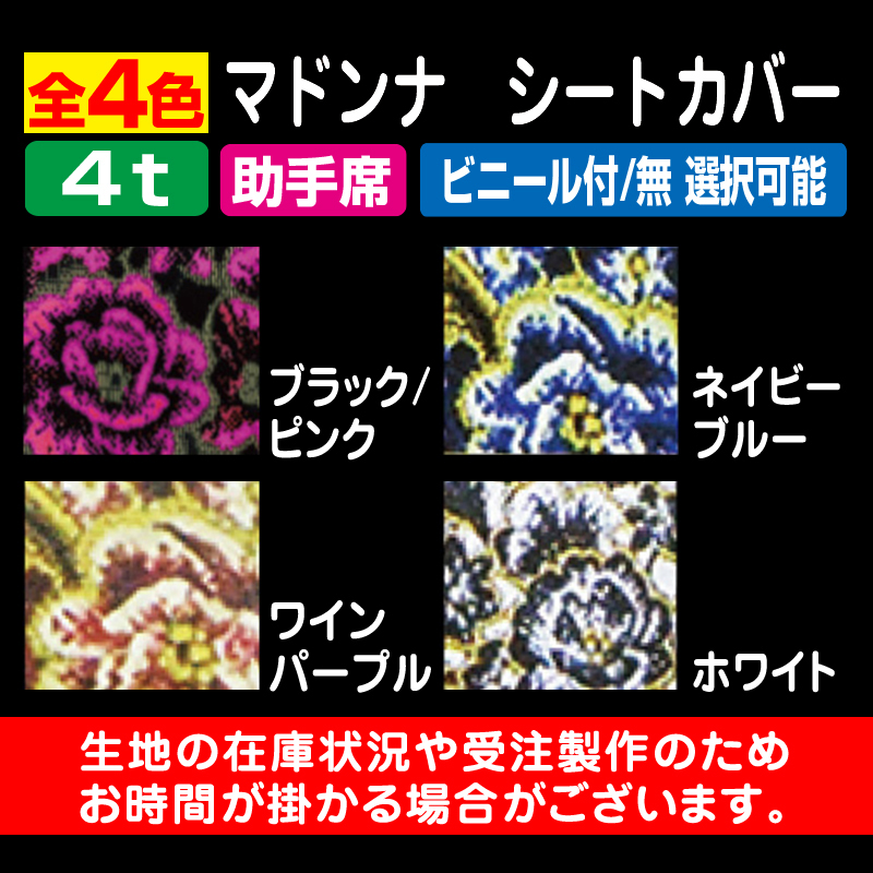 マドンナ シートカバー(4t/助手席)[全4色] ビニール付/無 選択可能 (受注製作品/代引き不可)