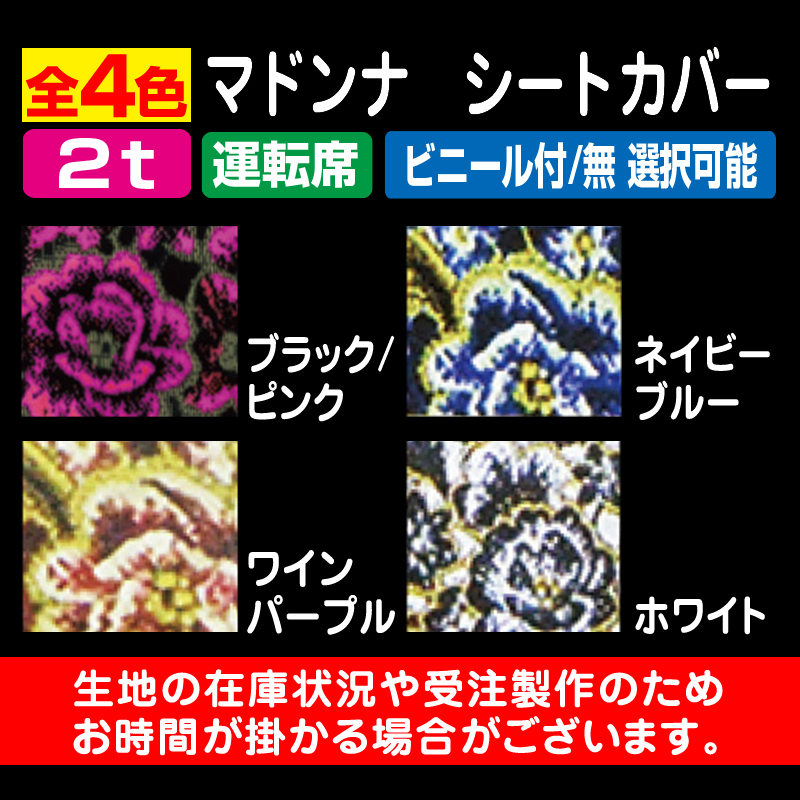 マドンナ シートカバー(大型/運転席)[全4色]ビニール付/無 選択可能 (受注製作品/代引き不可)