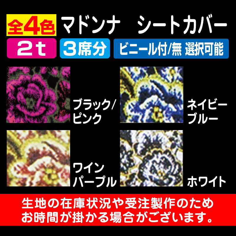 マドンナ シートカバー(2t/3席)[全4色]ビニール付/無 選択可能 (受注製作品/代引き不可)