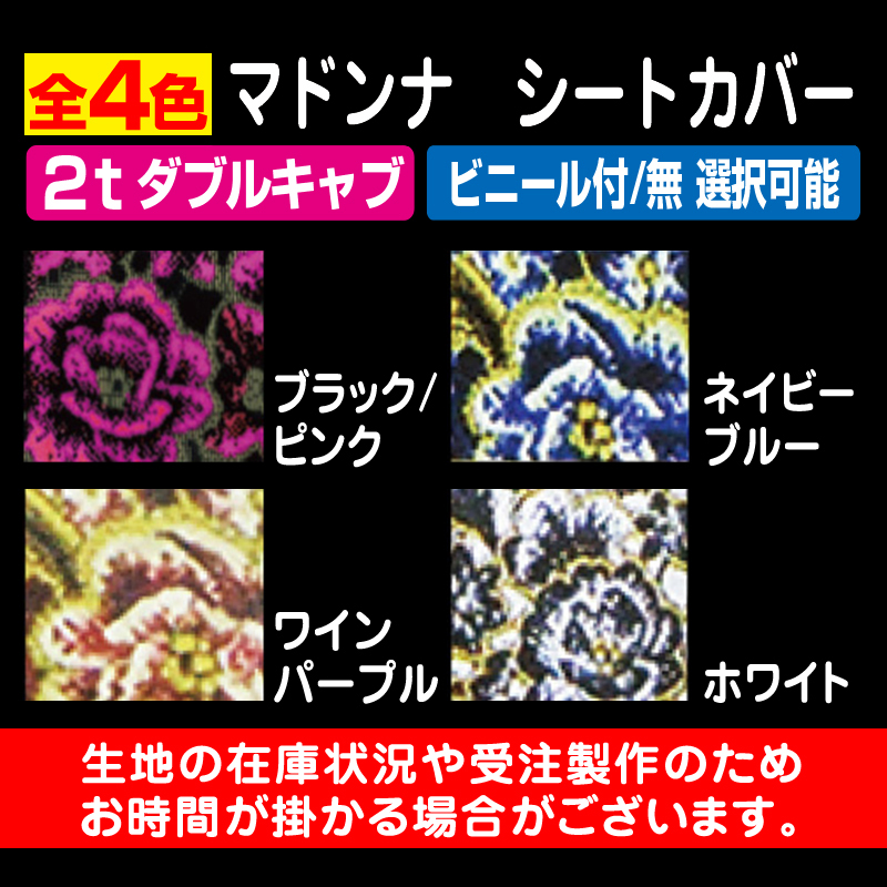 マドンナ シートカバー(2t/ダブルキャブ)[全4色]ビニール付/無 選択可能 (受注製作品/代引き不可)
