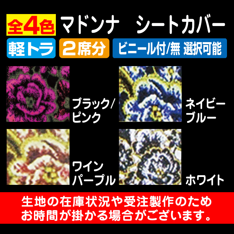 マドンナ シートカバー(軽トラ/2席)[全4色]ビニール付/無 選択可能 (受注製作品/代引き不可)