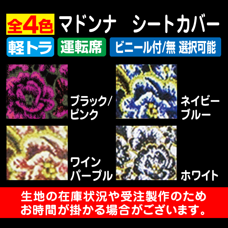マドンナ シートカバー(軽トラ/運転席)[全4色]ビニール付/無 選択可能 (受注製作品/代引き不可)