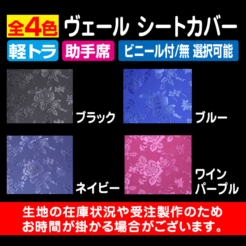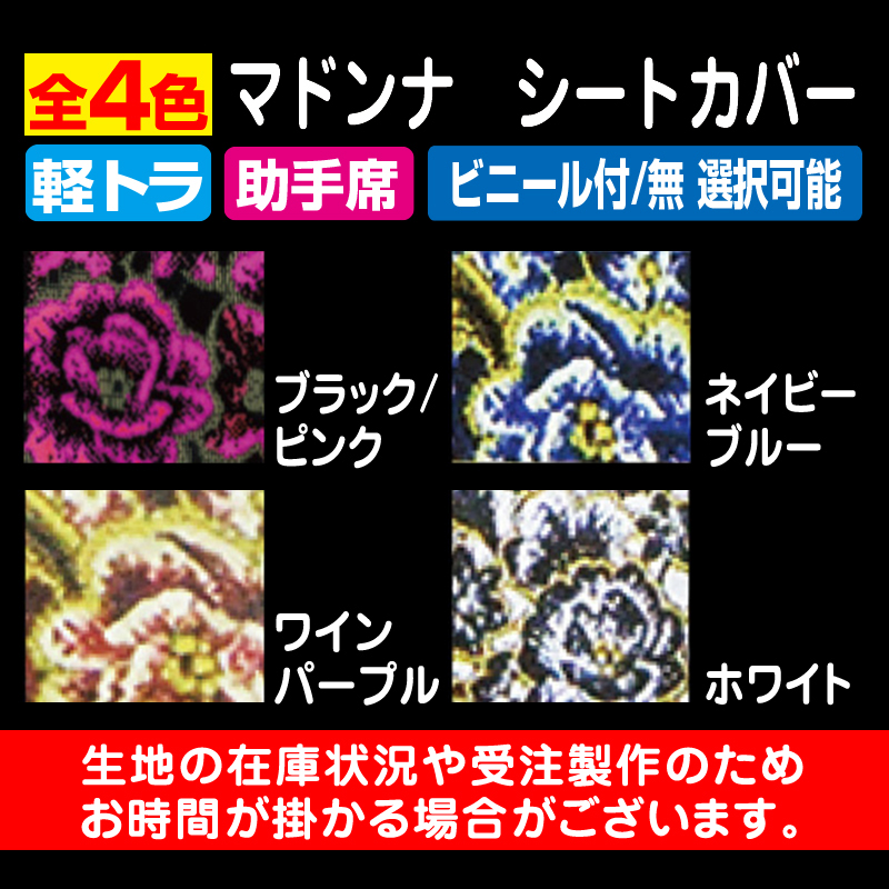 マドンナ シートカバー(軽トラ/助手席)[全4色] ビニール付/無 選択可能 (受注製作品/代引き不可)