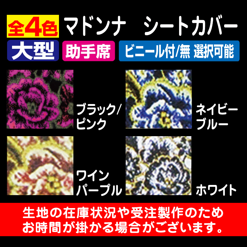 マドンナ シートカバー(大型/助手席)[全4色]ビニール付/無 選択可能 (受注製作品/代引き不可)