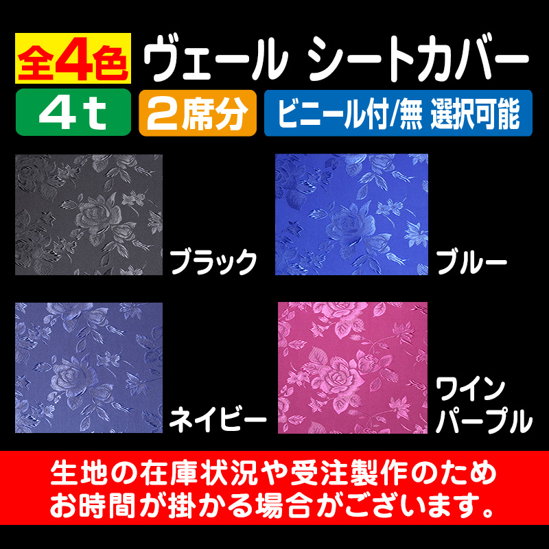 ベルサイユ シートカバー(4t/2席)[全4色]ビニール付/無 選択可能 (受注製作品/代引き不可)
