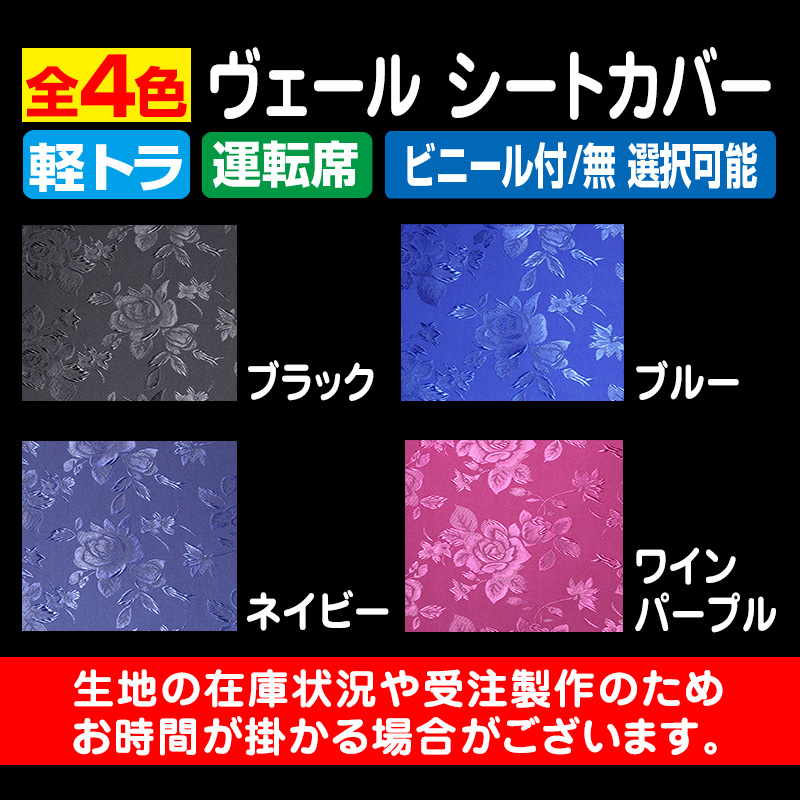 チンチラ シートカバー(軽トラ/運転席)[全6色]ビニール付/無 選択可能 (受注製作品/代引き不可)