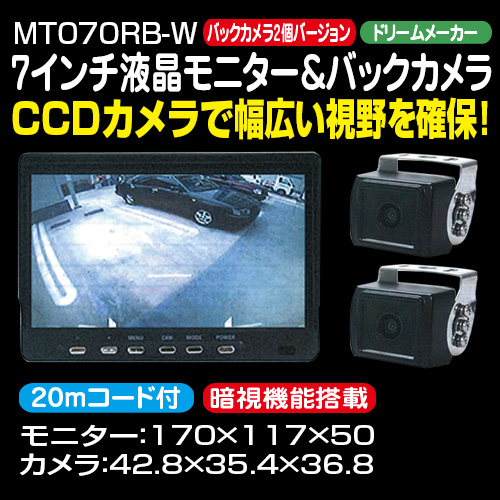 MT0707RB-W 7インチ液晶モニター&CCDバックカメラセット(バックカメラ2個バージョン) 12/24V対応