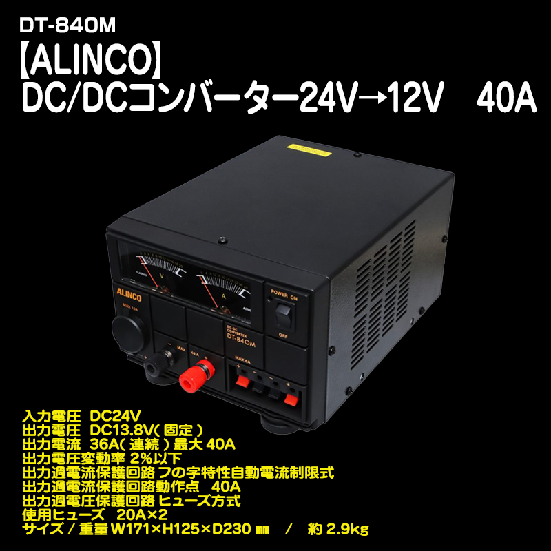 【ALINCO】DC/DCコンバーター 24V→12V 40A DT-840M